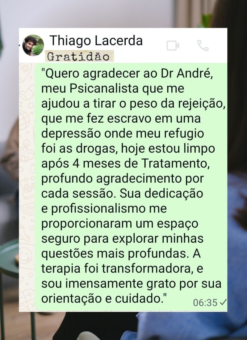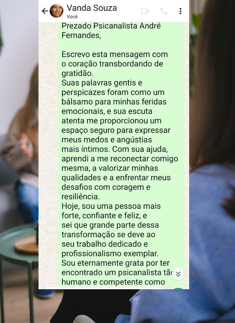 Sou André Luiz, Psicanalista, Palestrante e Terapeuta Clínico. pai de quatro filhos e avô de dois netos, tenho um grande amor pela vida e um profundo interesse na psique humana, que me desafia constantemente.